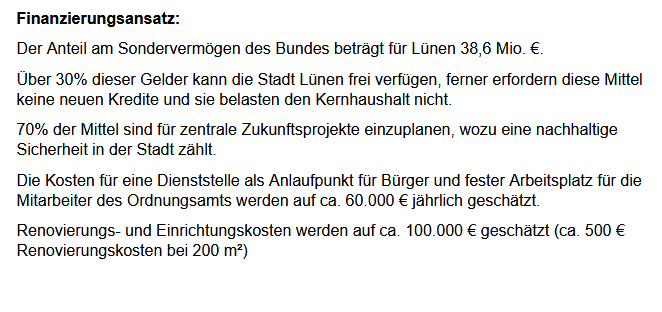 Stattdessen kalkuliert die AfD Lünen in einem aktuellen Antrag mit einem großen Budget für angeblich mehr Sicherheit. Geld, das am Ende nicht in echte Lösungen fließt, sondern in Symbolpolitik.